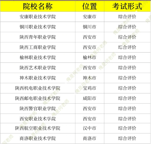 一、陜西高職分類考試綜合評價院校名單: