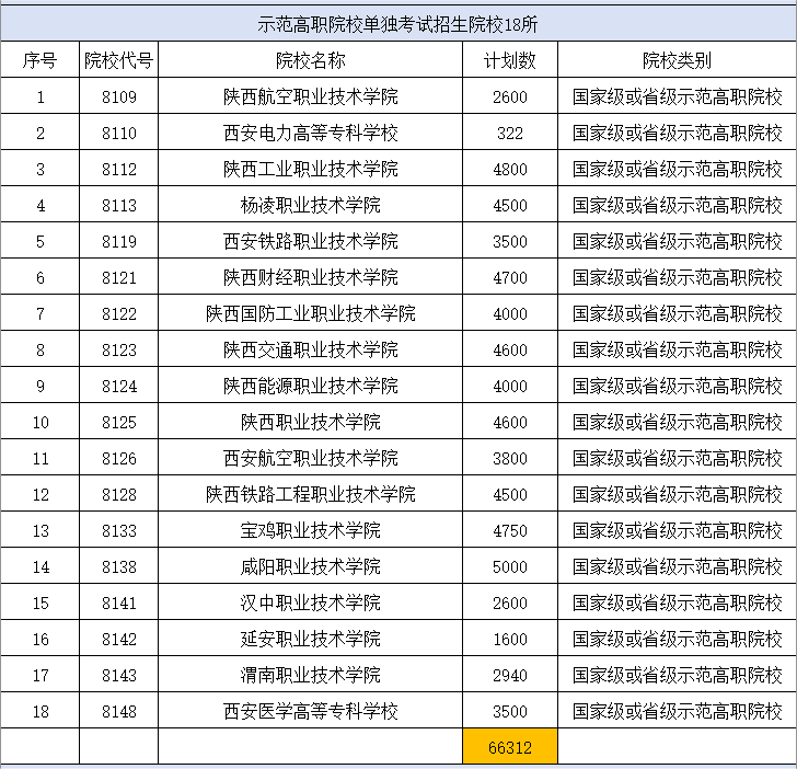 二、陜西高職分類考試省示范高職院校名單:
