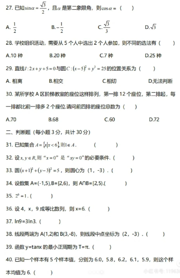 以下是陜西高職分類考試網(wǎng)給大家分享的陜西高職單招數(shù)學練習題,參加24年陜西高職單招考試的同學們一起來練一練手吧!