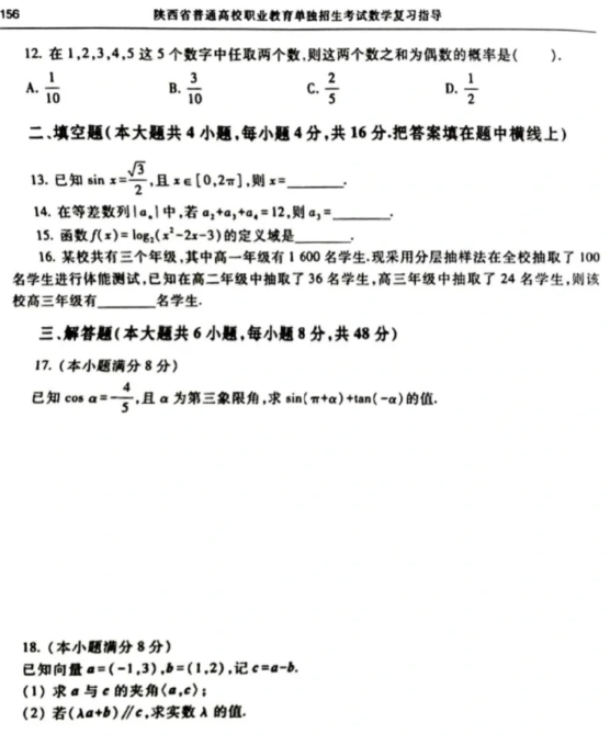 以下是陜西高職單招考試網(分類考試給大家分享的陜西高職單招考試數學歷年真題。正在備考陜西高職單招考試的同學們一起來練一練吧!