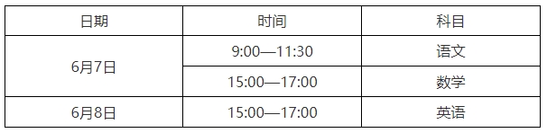 文化課實行全省統考,試題由省教育考試院依據現行職業高中教學大綱命制。考試時間安排如下:
