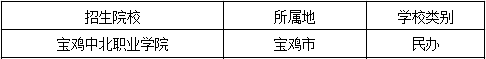 寶雞中北職業學院:寶雞中北職業學院是經陜西省政府批準、教育部備案、陜西中北鐵道教育集團舉辦、納入國家統招計劃的全日制高等院校。學院在全省同行業率先實現了辦公自動化管理在全市同行業率先通過ISO9001國際質量管理體系認證。良好的社會口碑使學院先后榮獲“全國職教先進單位”、”省級誠信職教院校”及省、市職教先進單位等殊榮,被確定為“中美文化交流基地”。