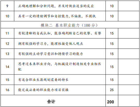 “三校生”技術技能測試采取自我展示、回答問題和完成實操相結合的方法,以教育部發布的中職專業教學標準中核心技術技能為基本依據,以操作考試為主,通過考察學生對崗位技能、通用技術等內容的職業潛能進行整體觀察、考核和評價,滿分值為 200 分。