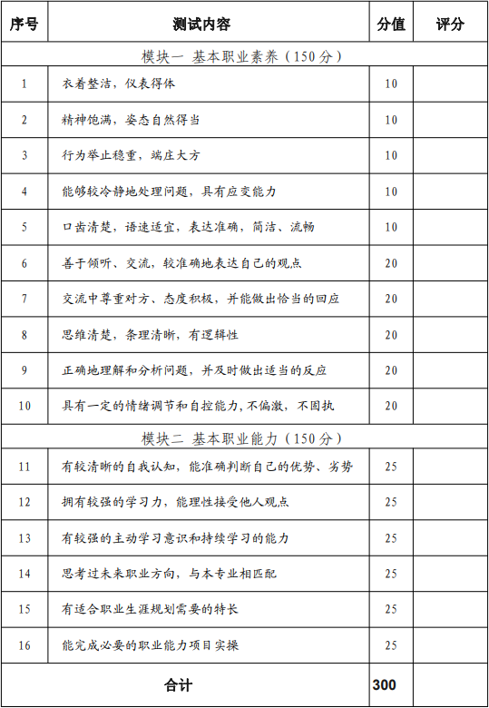 普通高中畢業生和高中同等學力人員職業適應性測試采取自我展示和問題回答相結合的方法,主要通過考生的自我介紹、回答問題等環節對學生的基本素養、學習能力及對自動化類 1 專業職業的認識來對考生的職業潛能進行整體的觀察、考核與評價,滿分值為 300 分。