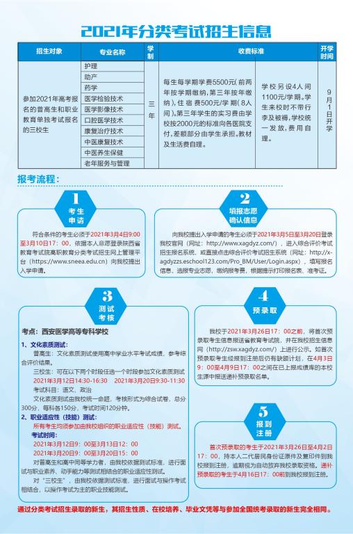 西安醫學高等??茖W校2021年分類考試招生簡章