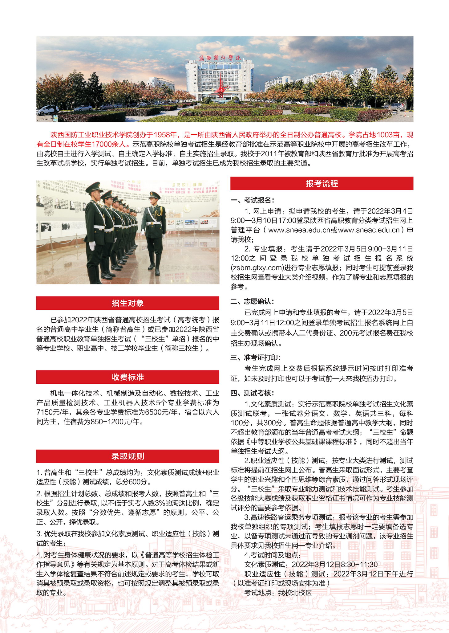 2022年陜西國防工業職業技術學院單獨考試招生簡章