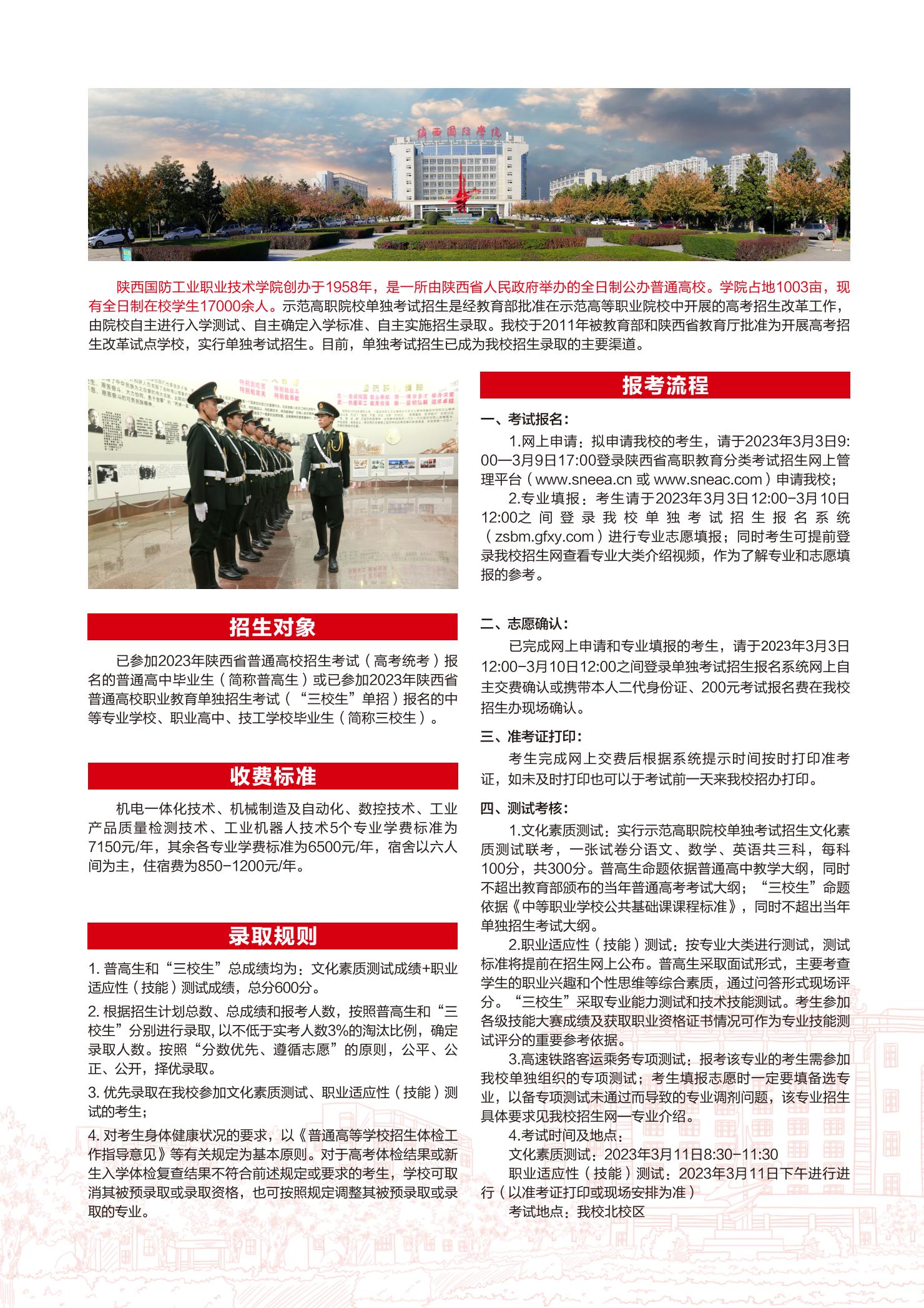 以上就是“2023年陜西國防工業職業技術學院單獨考試招生簡章”的全部內容,了解更多陜西省職教高考招生院校詳細,歡迎訪問陜西高職分類考試網!