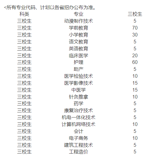 2020年高職單招考試計劃表(三校生)