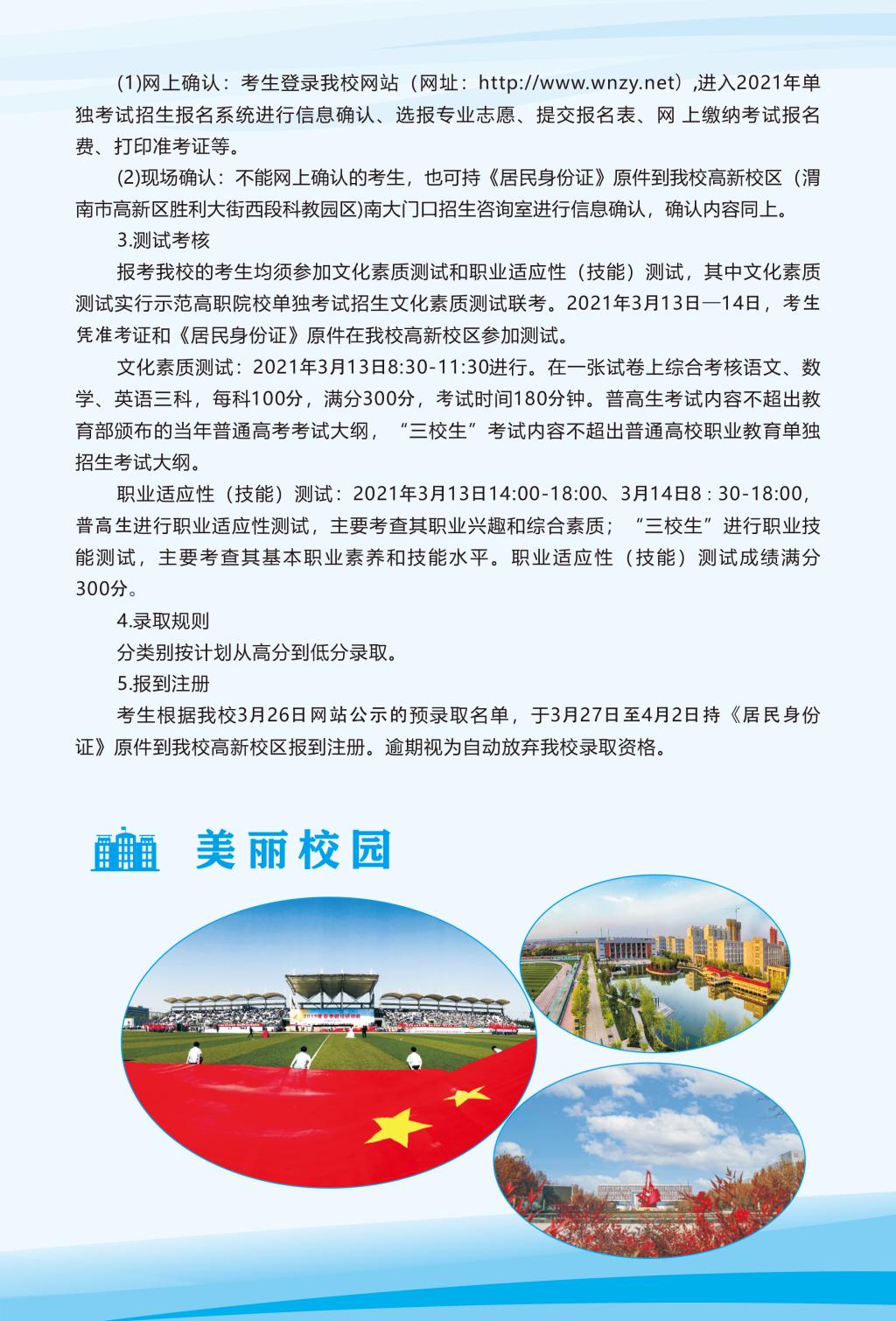 渭南職業技術學院2021年單獨考試招生簡章