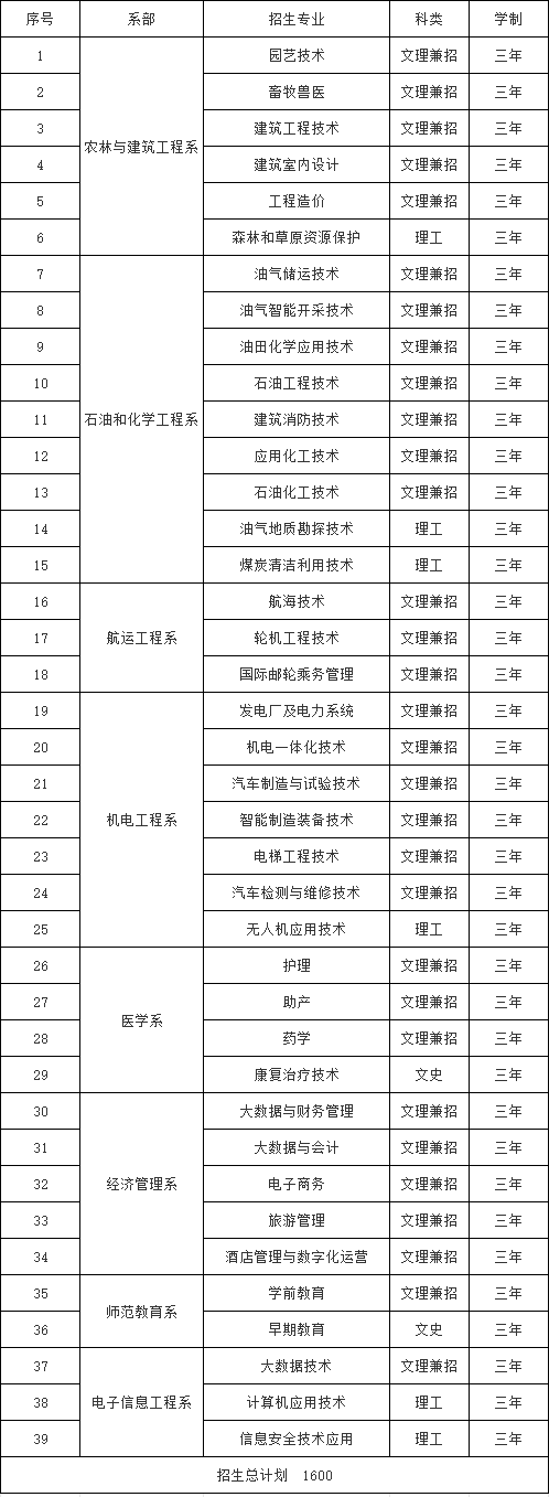 延安職業(yè)技術(shù)學院招生專業(yè)一覽表
