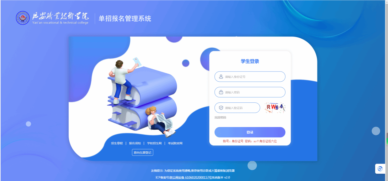 1.考生登錄延安職業(yè)技術(shù)學(xué)院招生信息網(wǎng)(網(wǎng)址:https://zsw.yapt.edu.cn/)。