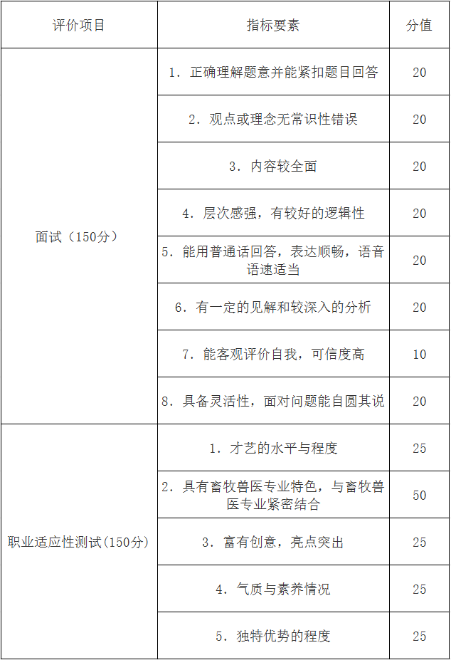 延安職業技術學院2024年分類考試畜牧業類專業職業適應性(技能)測試標準: