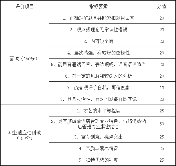 延安職業技術學院2024年分類考試旅游類專業職業適應性(技能)測試標準: