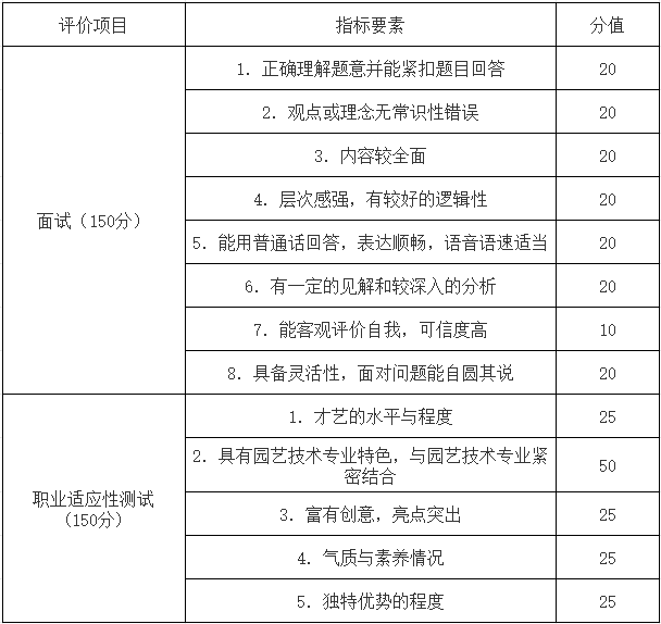 具備一定的自我學習能力、信息收集與處理能力、數字應用能力、問題解決能力、邏輯思辨能力、分析判斷能力、自我管理和自我提升能力,具有較好的團隊協作意識和創新意識。重點考察考生對植物與植物生理、土壤肥料、植物保護與養護、果樹、觀賞植物、蔬菜等園藝植物選育種、生產與貯運、試驗與統計分析、企業管理與市場營銷知識的了解程度、職業興趣、職業性格、職業價值觀、職業能力傾向等方面與報考專業(職業)的匹配程度。