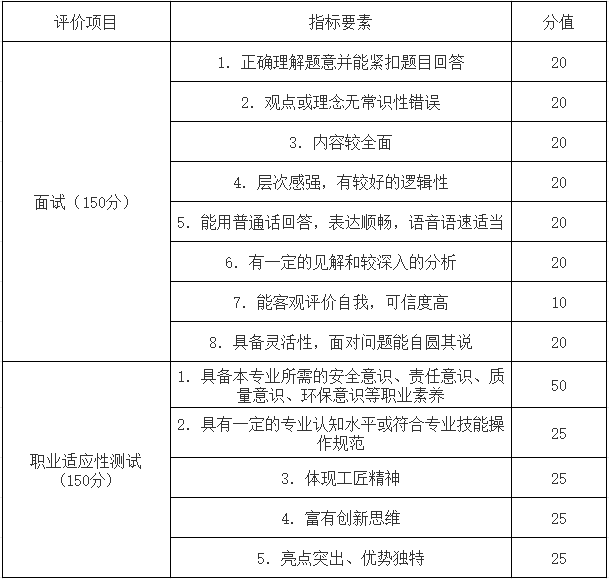 延安職業技術學院分類考試職業適應性(技能)測試標準