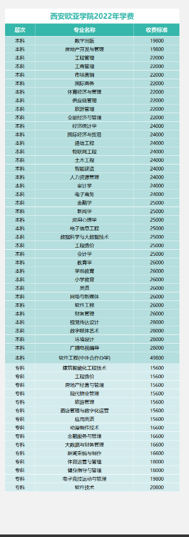 您現(xiàn)在的位置: 陜西高職分類考試網(wǎng) >  招生院校 > 西安歐亞學(xué)院 > 學(xué)院動態(tài)  > 西安歐亞學(xué)院2022年學(xué)費