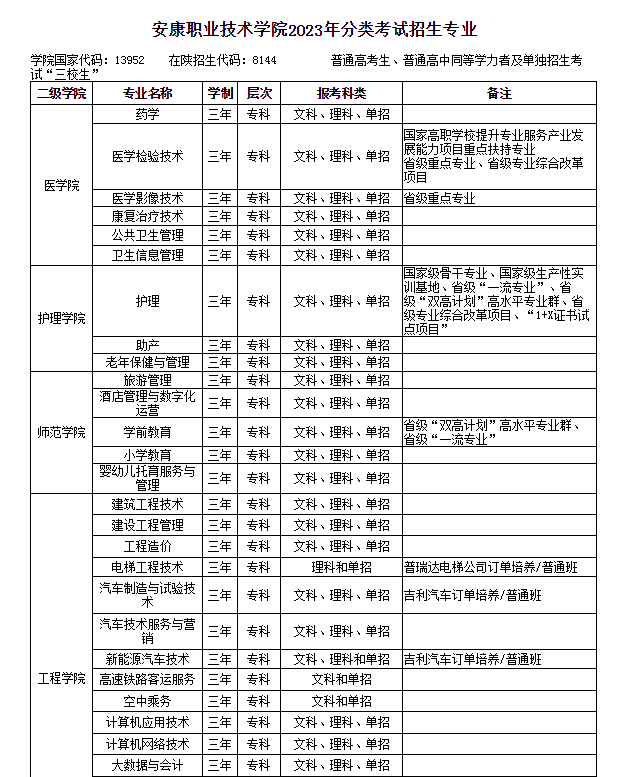 陜西高職分類考試網分享安康職業技術學院2023年分類考試招生專業,希望能給大家提供幫助!