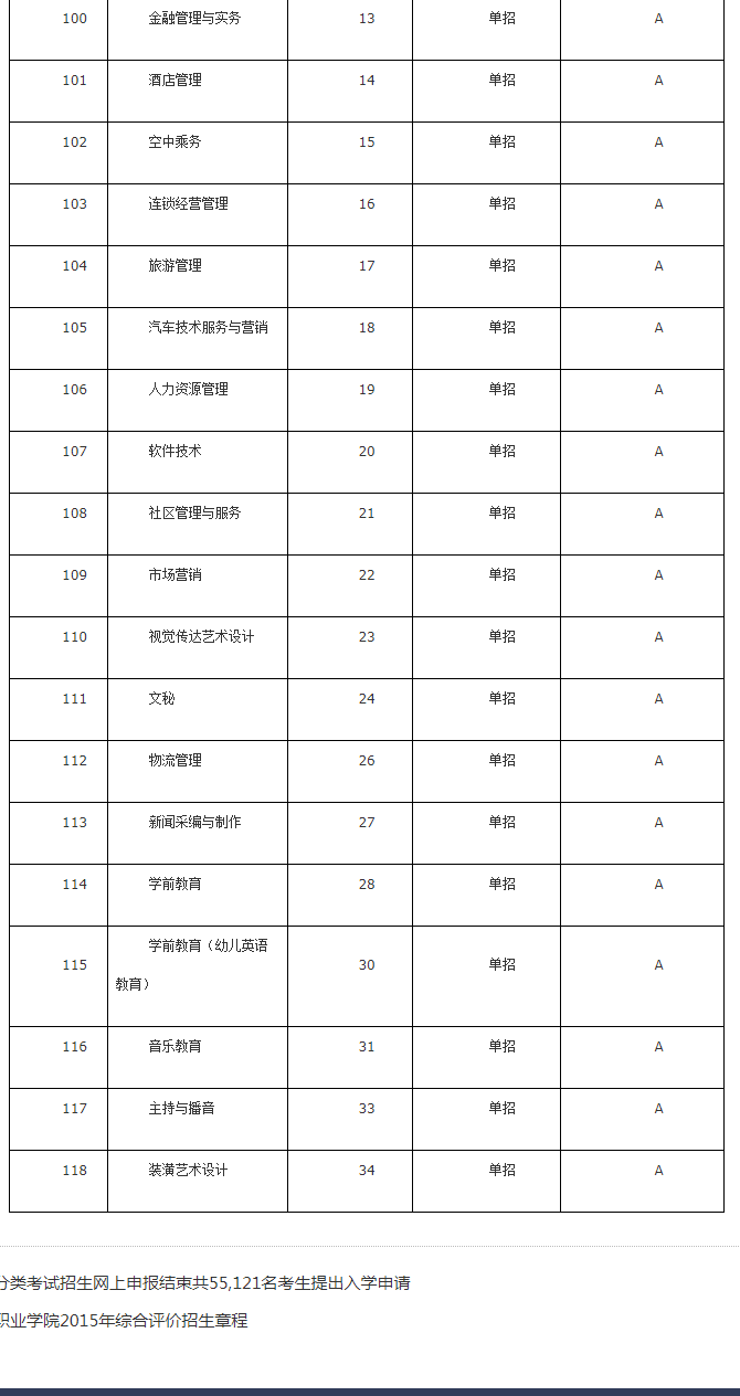 2015年陜西青年職業學院綜合評價招生專業一覽表
