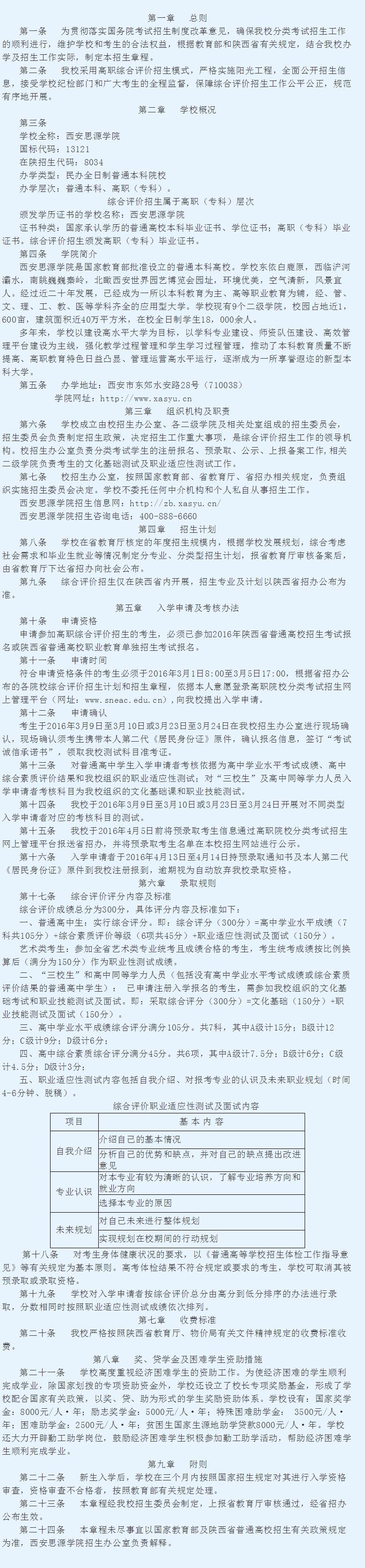 西安思源學院2016年陜西省普通高等職業(yè)教育分類考試招生章程