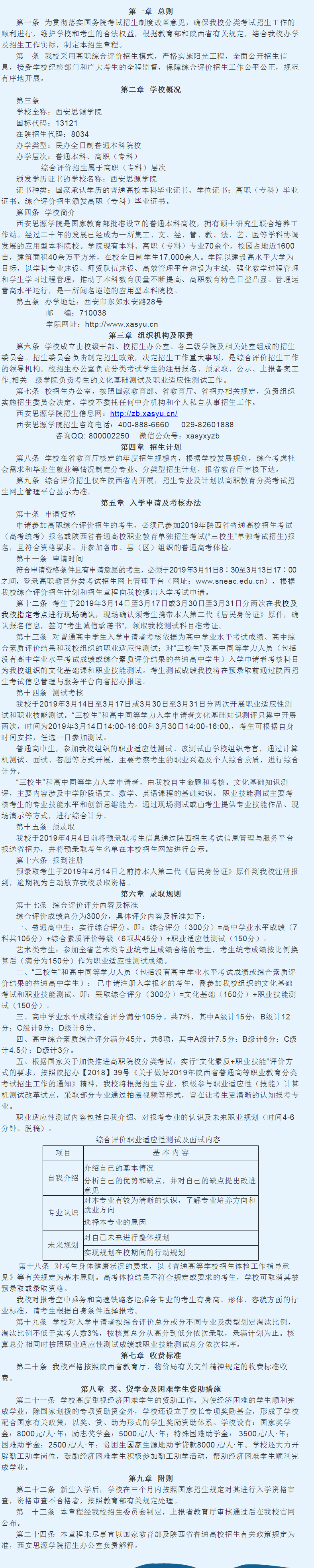 西安思源學院2019年陜西省普通高等職業教育分類考試招生章程