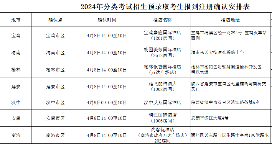 西安職業(yè)技術(shù)學(xué)院在校本部、辛家廟校區(qū)、寶雞市、渭南市、榆林市、延安市、漢中市、安康市、商洛市等地設(shè)立報(bào)到注冊(cè)確認(rèn)點(diǎn),考生可根據(jù)本人實(shí)際情況就近選擇。具體安排如下: