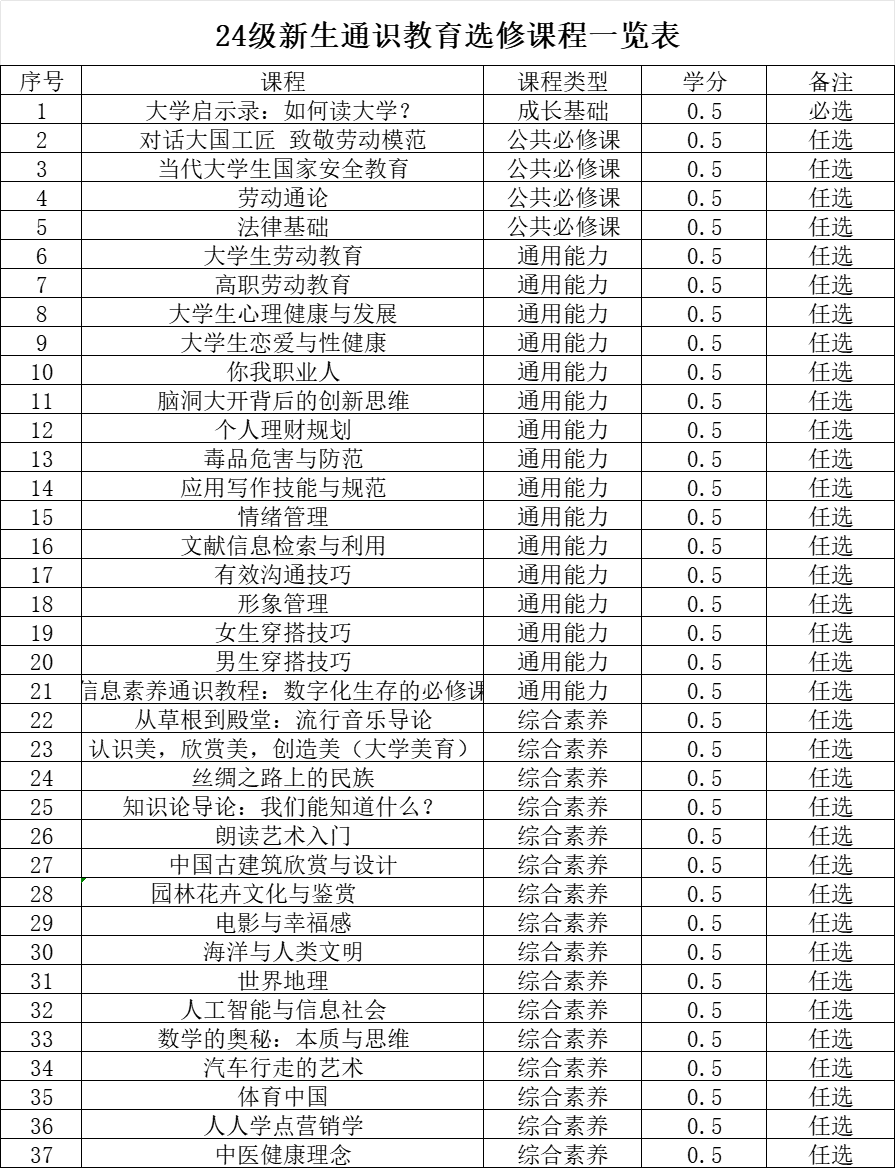 學校利用通識教育課程平臺,推進優質課程資源共享使用,旨在幫助新生快速實現角色轉換與身份認同,培養和提高新時代大學生的通用知識和能力,提升綜合素養。課程內容涵蓋綜合素養、通用能力、創新創業、成長基礎和個人發展等方面。
